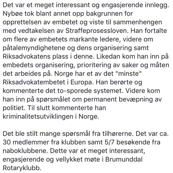 Riksadvokatembetet. v/ Førsteriksadvokat Terje Nyboe