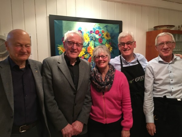Rakfiskaften med god stemning. I alt 27 av våre medlemmer var møtte opp pluss 6 gjester. På bildet nedenfor ser vi komiteen for rakfiskaften. Fra venstre: Peter Olstad, Ole Ellefsæter, Anne Glestad Haug, Åge Sørlundsengen og Kristian Østvoll. Her er Rotary Norden, 1. utgave 2018