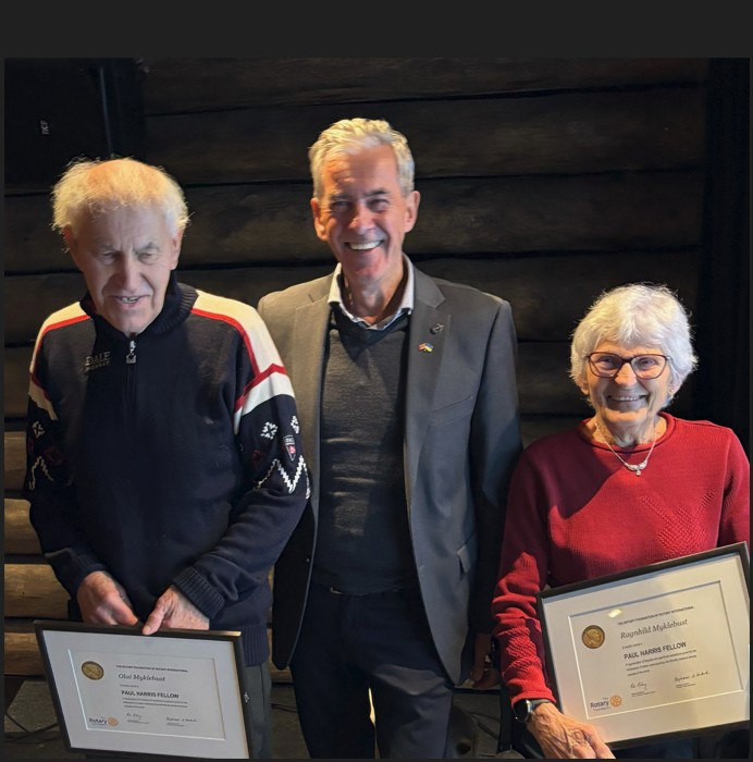 Hovedtema for møtet var utdeling av PHF (Paul Harris Fellow) til Ragnhild og Olai Myklebust.